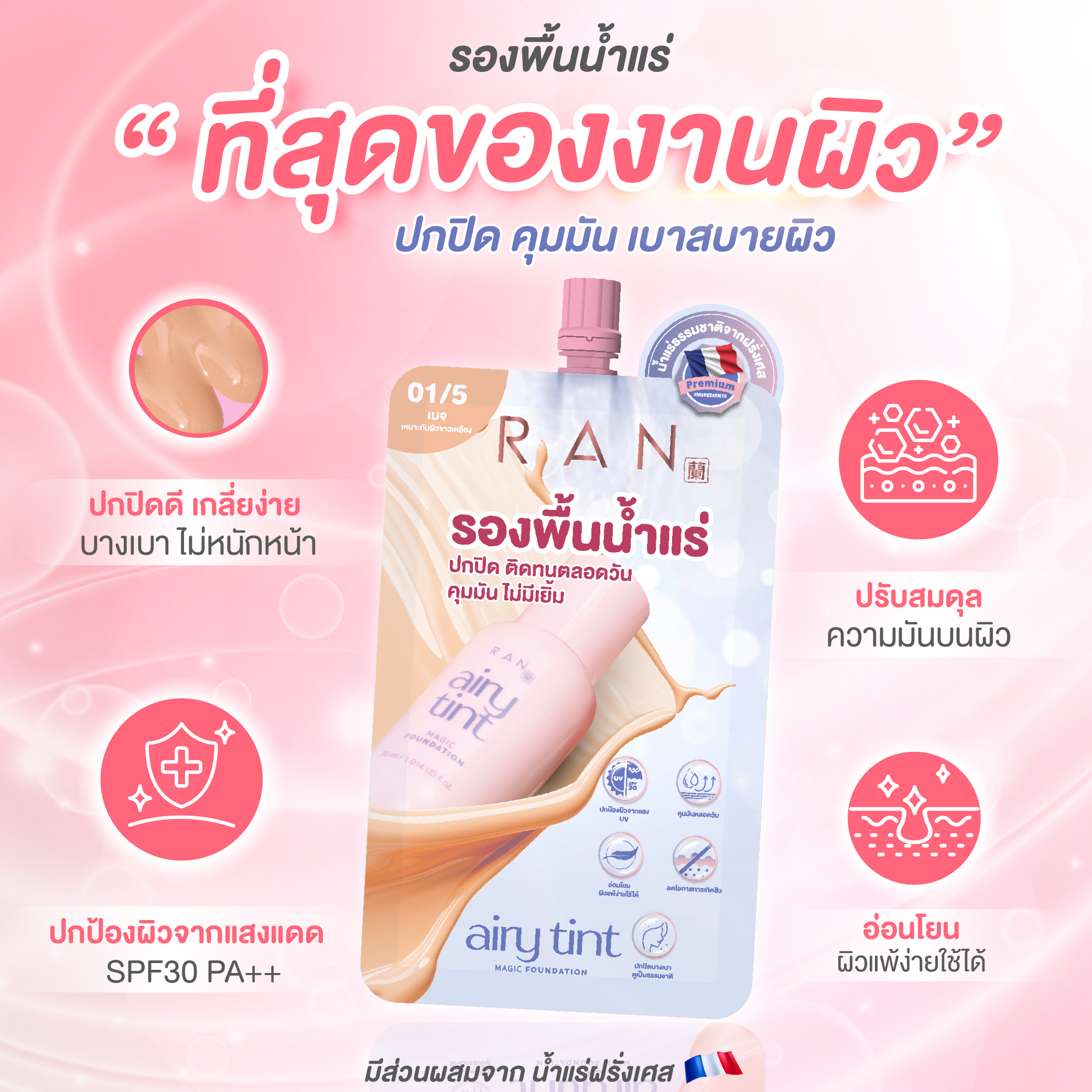 โดยรัน แอรี่ทิ้นท์ เมจิก ฟาวเดชั่น ให้ผลลัพธ์ผิวสวยแมตต์แต่ยังดูมีมิติ เล่นแสงสวยเหมือนใส่ฟิลเตอร์บาง ๆ บนผิว แถมติดทนนาน แต่บางเบา ไม่หนักหน้า พร้อมลดความมันทำให้ไม่เป็นคราบตลอดวัน ต่อให้เที่ยวทั้งวัน ผิวก็ยังเนียนสวยทุกมุมมอง
