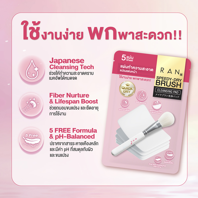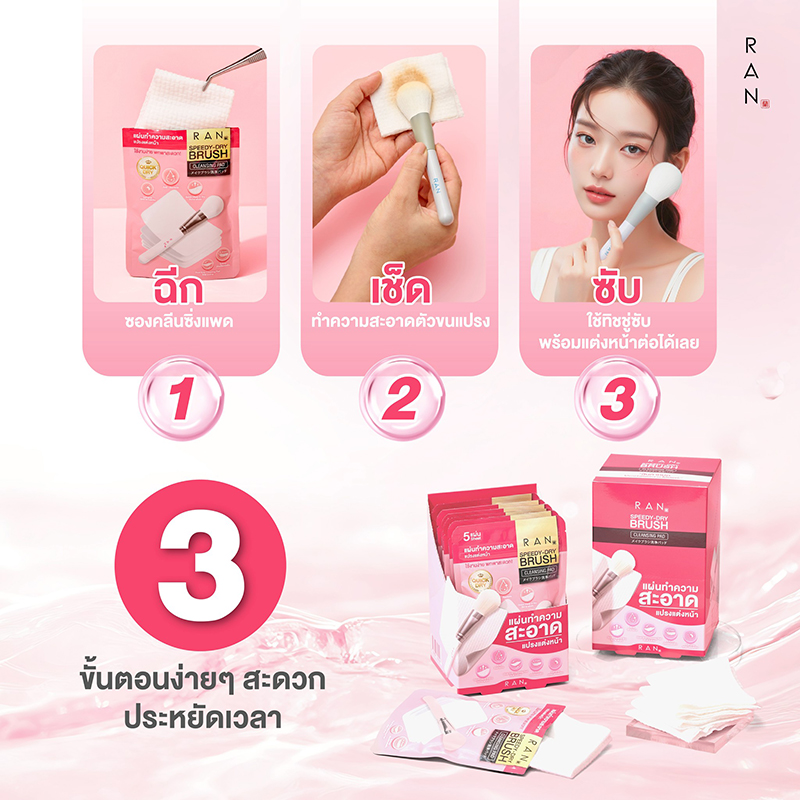 RAN Speedy-Dry Brush Cleansing Pad เช็ดปุ๊บ แห้งปั๊บ แต่งหน้าต่อได้ทันที